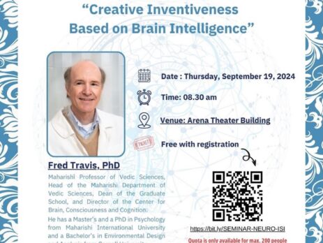 Seminar ini diadakan oleh Program Studi Penciptaan Musik bersama Satu Wellness Indonesia dengan narasumber Prof. Fred Travis, Ph.D dari Maharishi International University, Iowa.
